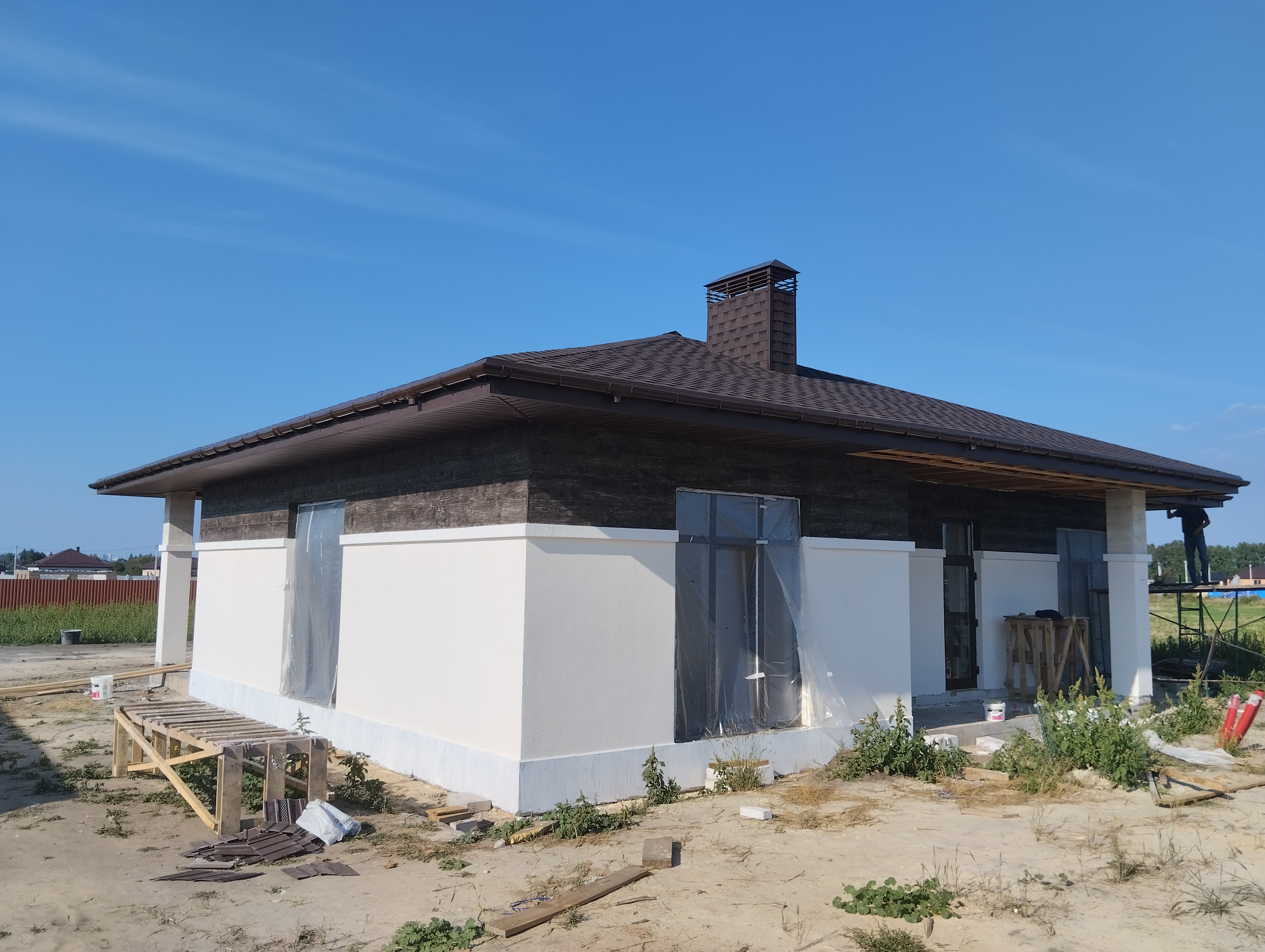 Сборка теплого контура и установка крыши