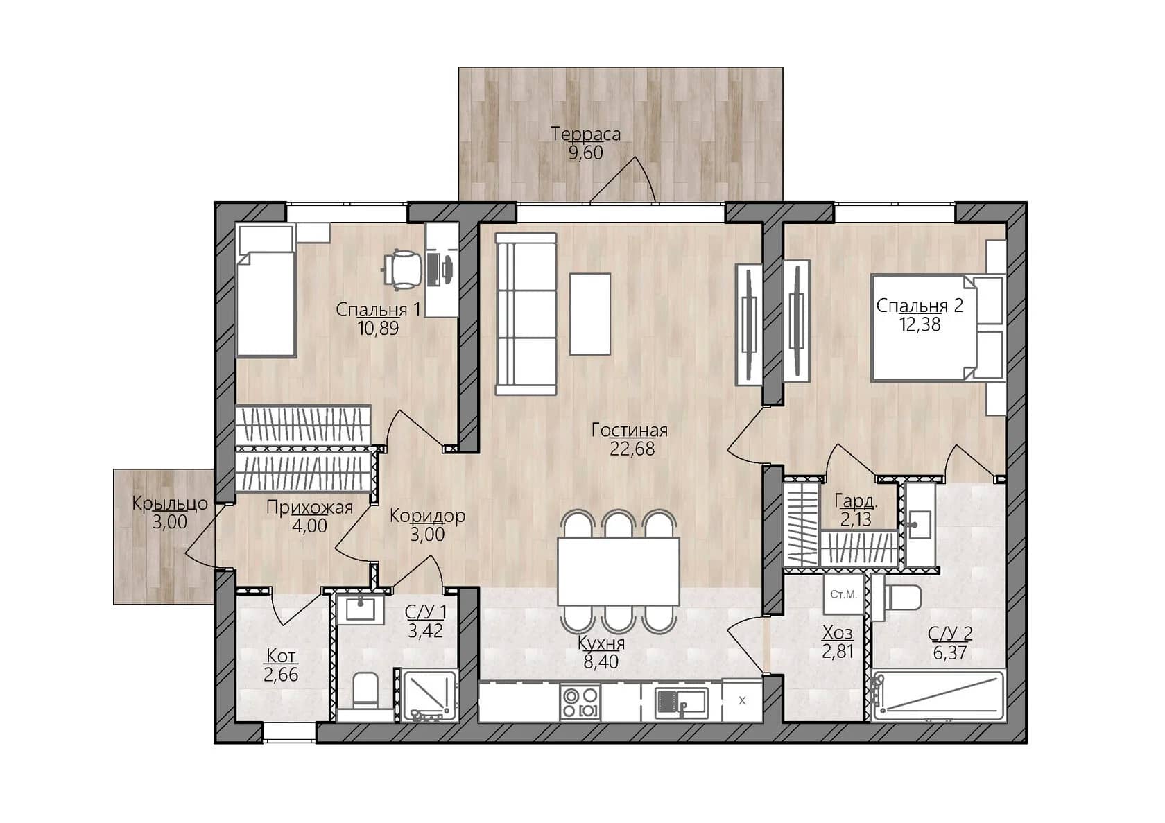 - Площадь 73 м2